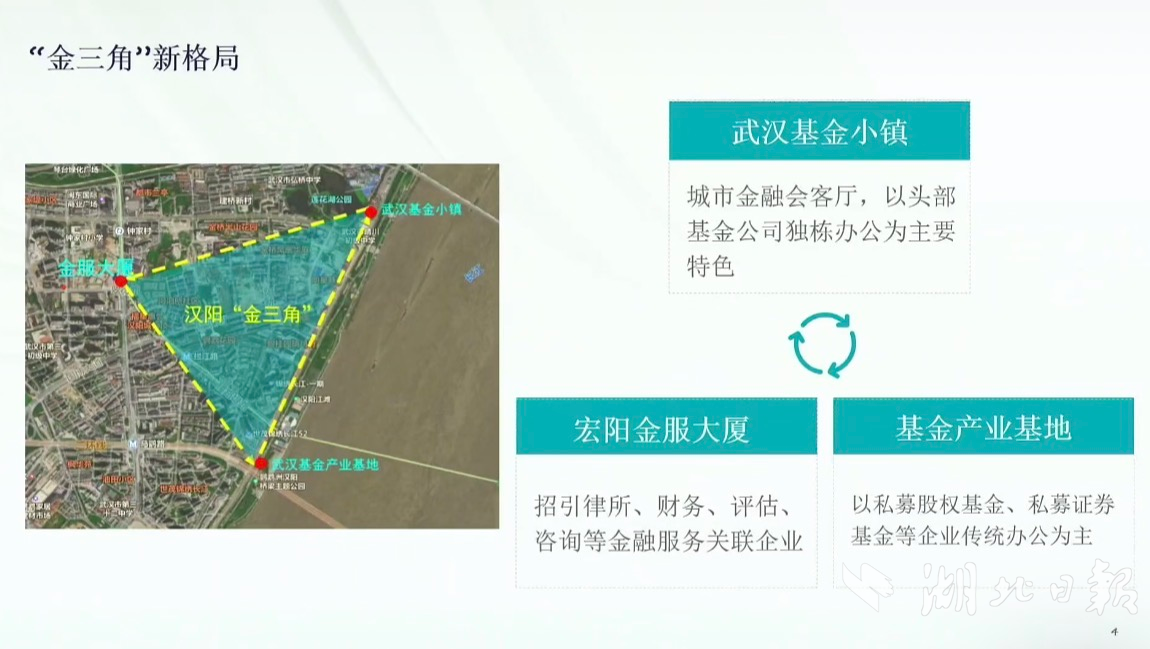 “AI是金融的神经触突,金融是AI的能量血浆。”现场,汉阳区发布武汉基金小镇项目,该项目将与武汉基金产业基地、宏阳金服大厦构建起“金三角”新格局,成为金融业发展的涡轮增压器。